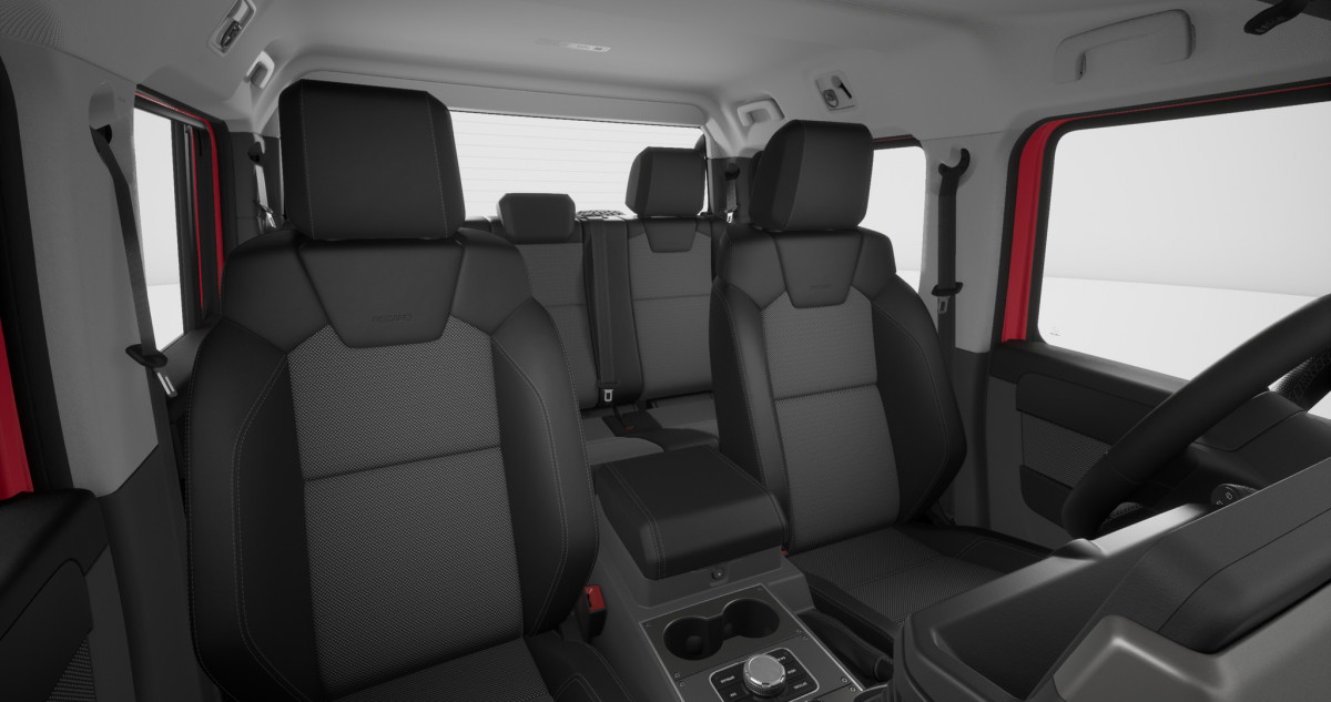 The rear seat area is tight, however. Because INEOS extended the chassis to create the pickup bed, the rear cabin sacrificed some space.