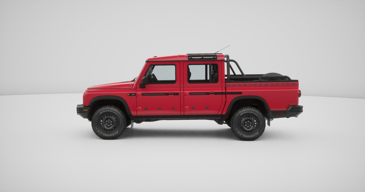 This brute of an off-roader feels like a mashup between a Jeep Gladiator and a classic Land Rover Defender. In fact, the Quartermaster is based on the Grenadier SUV, which itself was designed as a modern interpretation of the original Defender.