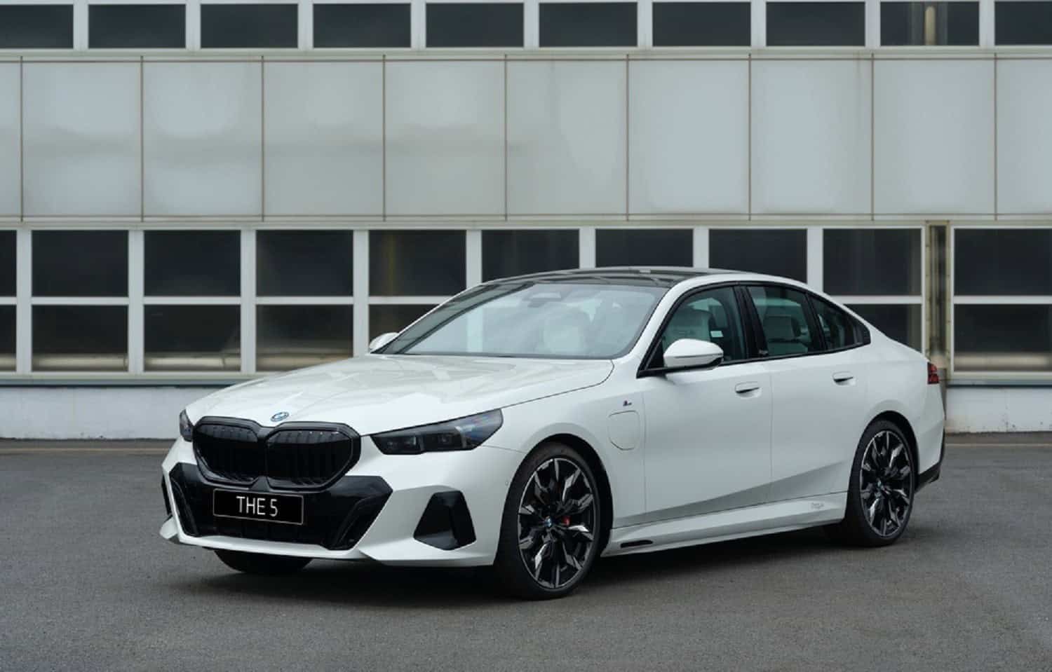 Next up is the 5 Series in 550e xDrive guise. It may appear to wear a plain white finish, but BMW says it’s a “clearer and deeper color” achieved through a meticulous process of painting, sanding, priming, and repainting three times. Like the M3, the Individual Manufaktur logo graces the base of the B-pillars and the lower rear doors.