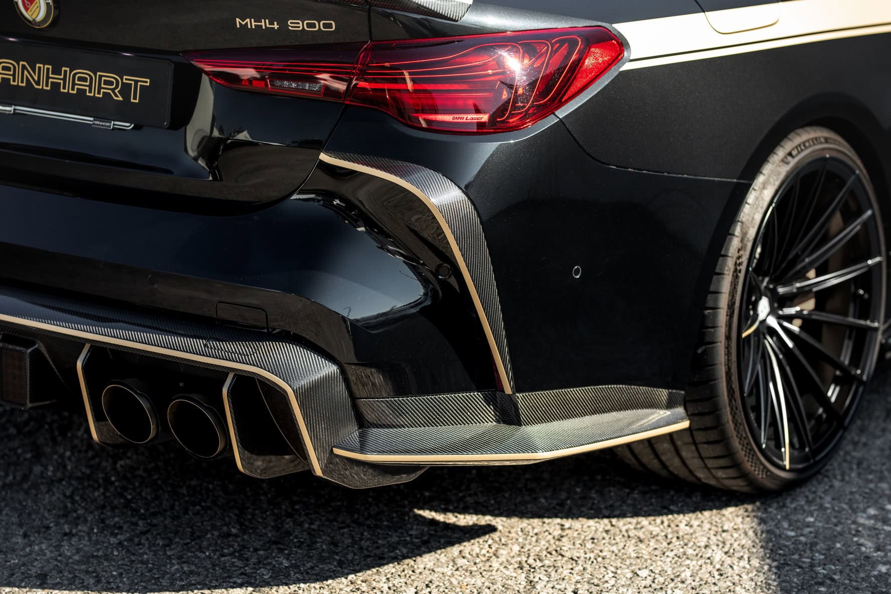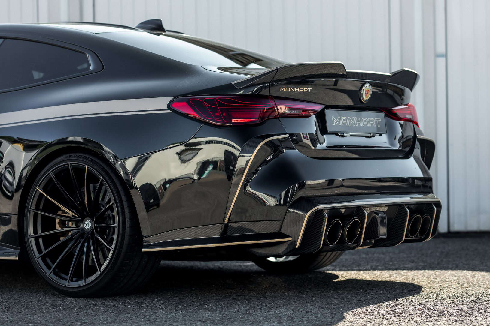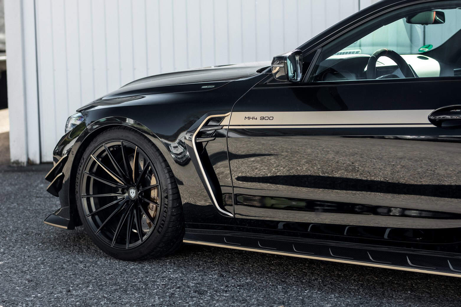 This black monster is one of only 1,000 M4 CSLs made by BMW and stands out with Manhart’s aggressive body kit. The matte black multi-spoke wheels made by Raffa measure 20 inches at the front with 285/30 tires and 21 inches at the rear with 305/25 rubber. No Manhart build would be complete without the signature champagne-colored accents. There’s also carbon fiber just about everywhere you look, along with fat 110-mm quad exhaust tips.