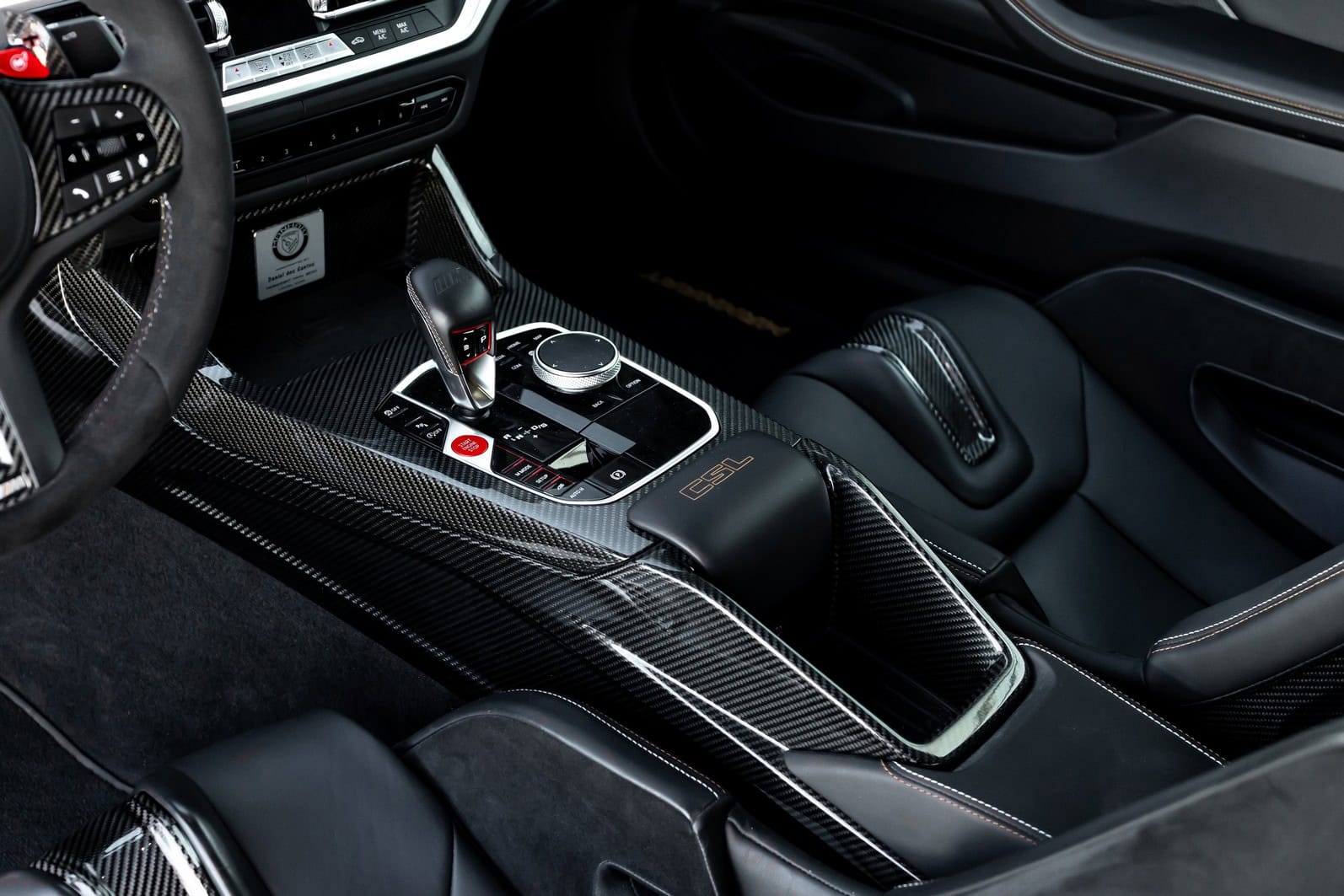 The long list of modifications includes height-adjustable coilover springs for sharper handling and more visual drama. Since this build is based on the CSL, Manhart had plenty of room in the rear cabin to install a roll cage. New floor mats and champagne trim round out the interior changes. Although not explicitly mentioned, the left air vent has been replaced by an auxiliary screen displaying key performance data.