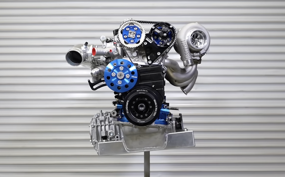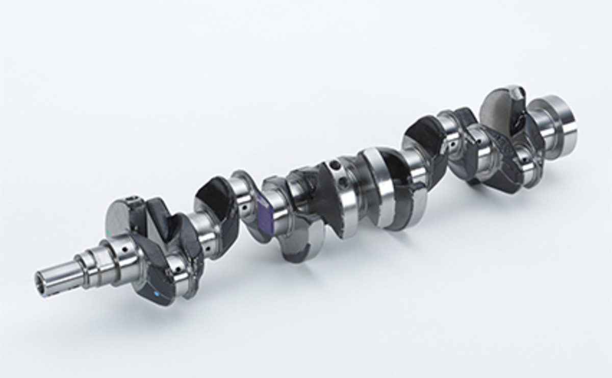 The oversquare design lent itself well to high-rpm builds. The cast aluminum pistons are endowed with integrated oil galleries that are fed by block-mounted oil nozzles to keep temperatures in check, while the forged steel crankshaft and connecting rods are sturdy enough to handle big power. Up top, the DOHC belt-driven valvetrain sits within an all-aluminum head, with relatively large valve diameters and somewhat mild cam profiles. The engine is fed through a flow-optimized intake manifold and three sets of twin throttle bodies.