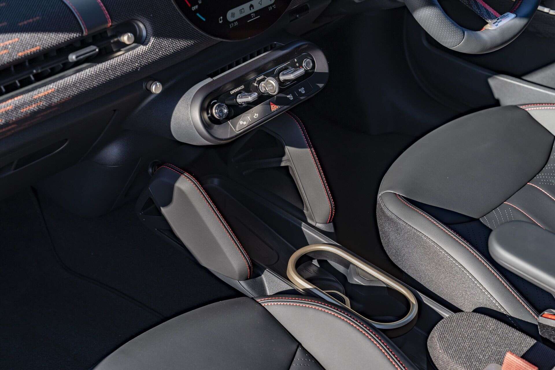 There’s a satisfying blend of cheeky design and premium tactility. Dashboard materials feature a chequered knit pattern, the steering wheel strap replaces a lower spoke, and there’s a playful use of red details throughout. However, the driving position in the J01 is slightly higher than the petrol JCW—noticeable and not universally liked among testers.