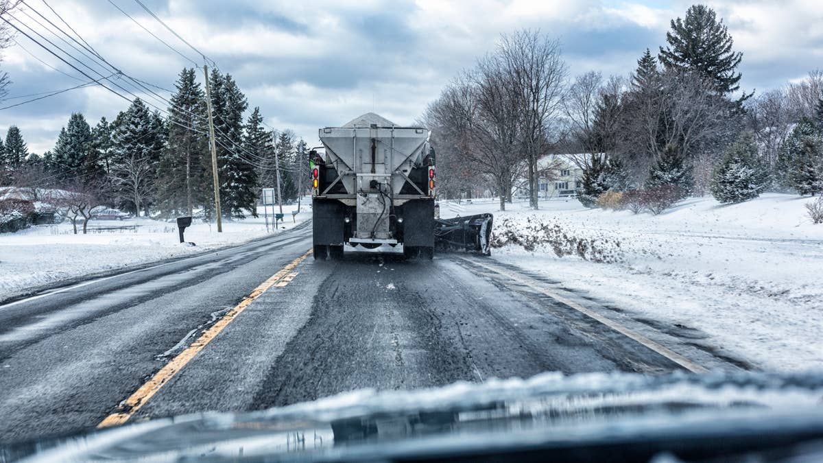 Monday. The snow tapers into the afternoon but compacted spring snow is heavier than midwinter powder, takes longer to plow, and refreezes overnight into a surface that can be harder to drive on than what the storm itself put down. The earliest realistic crossing window is Monday midday, more likely Tuesday morning.