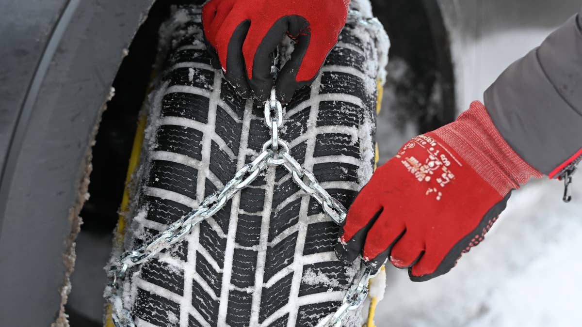 Anyone already on a mountain highway who sees conditions worsening should get off at the nearest exit, gas station or lodge. Chains are required above 4,000 to 5,000 feet and AWD does not exempt drivers from R-3 controls. Keep a full tank before entering the mountains. If stranded, stay in the vehicle and run the engine no more than 15 minutes at a time with a window cracked.